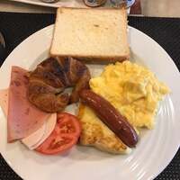 朝食。スクランブルエッグとパンの組み合わせ好きやわぁ…コシャリというエジプトの庶民的なメニュー麺の短いミートソーススパゲティにマカロニとコメと豆を入れた感じで…