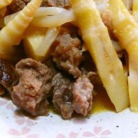 「馬肉の煮込み♪柔らかトロトロ秋田の味♪」の作り方。圧力鍋を使えばかたい馬肉も柔らかトロトロに煮あがります。ご飯が進む味噌味の秋田の郷土料理です。 材料: 馬肉、姫竹の子、つきこんにゃく
