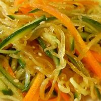 「そうめんかぼちゃde中華サラダ」の作り方。★2015.9.8 100人話題入り感謝★あと1品欲しい時にどうぞ。 材料: そうめんかぼちゃ、人参、きゅうり