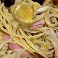 「黄色いキノコのペペロンチーノ」の作り方。珍しいキノコを使って、ペペロンチーノに! 材料: パスタ、オリーブオイル、鷹の爪