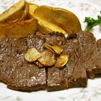 「弱火で焼く、正しいステーキの焼き方」の作り方。100人話題入り・400レポ・感謝♡カリカリにんにくが旨、旨~血の滲むレアの苦手な私のミディアムの焼き方です^^ 材料: 牛サーロイン又はヒレ、塩、胡椒、ニンニク