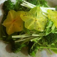 「スターフルーツサラダ」の作り方。簡単、あっという間、もう一品に。 材料: スターフルーツ、水菜、ブロッコリー