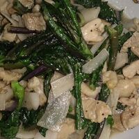 「日野菜と鶏肉の味覇(ウェィパー)炒め」の作り方。日野菜の苦味と鶏肉の旨み、シャキシャキ感がだまらなく癖になる炒めものです♪ 材料: 日野菜、鶏のモモ肉、味覇