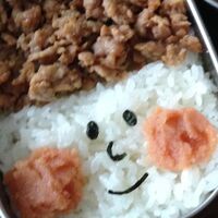 「顔弁の作り方〜そぼろ編〜」そぼろを使って簡単にかわいいお弁当を。凝ったキャラ弁よりは簡単です♪ 材料: そぼろ、ごはん、顔パーツ用の海苔
