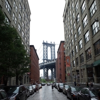 ダンボの街並み ウィリアムズバーグやダンボを観光した後、本来ならばブルックリンブリッジを徒歩で渡ってマンハッタンに戻りたかったのですが、あいにくの雨だし疲労困憊だったのでサブウェイを利用することに。 雨のダンボの街並みです。ブルックリンブリッジの柱の間からエンパイア・ステート・ビルディングを覗くこと…