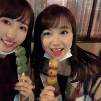 カントリー・ガールズの山木梨沙ちゃんとモーニング娘。の石田亜佑美ちゃんが二人で映画を見に行く前にお団子を食べたというお知らせ。