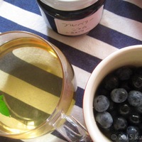 ブルーベリーと、ミントティーの朝。 夫の実家より、今年も自家製ブルーベリージャムを頂きました。 毎年、夫の父母が、庭で育てているブルーベリーの木から少しずつ実を収穫してジャムにしてくれます。 今年は、生のブルーベリーの実も一緒に届けてくれました! さっと洗って、ラムカンに盛って、そのままパクリ。 スーっ…