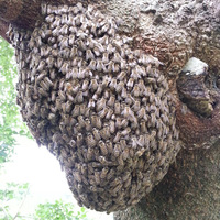 ニホンミツバチは、春、新しい女王バチが生まれると同時に、巣分かれによって群れを分け増えていきます。その際、巣箱の近くに「蜂球(ほうきゅう)」と呼ばれる、ハチの塊りをつくります。これがそれ。 社会性のあるミツバチは、巣分かれの際、巣の近くに群飛する前の集合場所として蜂球をつくります。新たな巣をどこにつく…