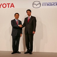 トヨタ自動車の豊田章男社長とマツダの小飼雅道社長は5月13日、都内で共同会見し商品や技術の補完など継続性のある協力関係の構築を進めることで合意したと発表した。