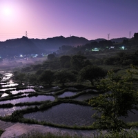 なんと儚く美しい!棚田の表情 ~ブルーアワーに落ちる月~