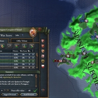 スペインとの戦争で、戦勝点54を獲得したら、スペインがせっせと育てた植民地をまるごと奪えることが分かった。 和平交渉時の画面は2種類あって、天地雲泥の差があるので要注意。 通常の領土割譲の画面では、求められる戦勝点が低いため全ての州を指定はできるが、外交君主力777、過剰拡大251という、とんでもない副作用が…