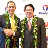 JAL(日本航空)とハワイアン航空が9月26日に包括的業務提携契約に合意。東京・天王洲のJAL本社にて共同記者会見を行なった。2018年3月25日より日本~ハワイ路線のコードシェア(共同運航)、マイレージの提携、ラウンジの相互利用を行ない双方の利用客のさらなる利便性の向上を図る。