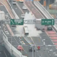 【動画有】名古屋高速で車が分岐に正面衝突し「水柱」が立つ!!!