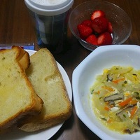 朝食 ・野菜とたまごのスープ 塩分0.7g ・無塩食パン+バター3g 塩分0.04g ・食パン+マービージャム 塩分0.6g ・いちご ・カフェオレ 朝食 塩分量1.34g 昼食 ・牛肉と玉ねぎとピーマンのオイスターソース炒め 塩分1.03g 材料を炒めてオイスターソース大さじ1で味付けしました。半分は夫のお弁当箱に入ったので塩分は… いつ…