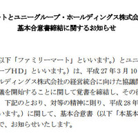 ファミリーマートとユニーグループ・ホールディングスが、来年9月の経営統合に向けて基本合意した。