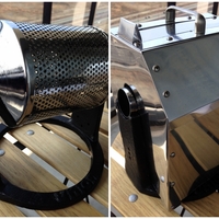 アウベルクラフトの焙煎機に続く焙煎機探し。選択肢はいろいろあるけれど、予算の都合でほぼ自動的に白羽の矢が立つことになったのが、ユニオンのサンプルロースターの200g版。サンプルロースターは最大容量450gのものもあるけれど、これはちょっと大きすぎるから200g。 次にパンチングありの直火式かパンチングなしの半熱…