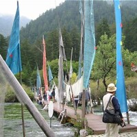少数民族チャン族の家見学後、九寨溝へ。水景色の美しさ、ボン教のお経がある風景。日本の年配の方から戦争についてのお話を伺う。