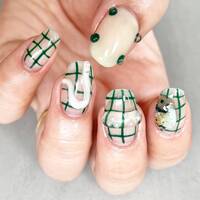 セルフネイルメモ:クリアベースのグリッド柄ネイル