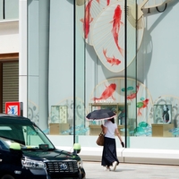 真夏の情景『銀座④』真夏を彩るディスプレイ Midsummer Scenery "Ginza④" A display that colors the middle of summer" PRADAのディスプレイ ロロ・ピアーナ 銀座(Loro Piana Ginza)のディスプレイはすっかり秋模様 松屋銀座のディスプレイ”銀座みやげ” MIKIMOTOの夏らしいディスプレイ TASAKIのディスプレイ 銀座和光の…