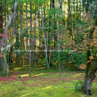 高桐院、本堂(客殿)の前庭です。 楓の木はほんの少しの葉残しただけの枯れ木になっていました。 その代わり、緑の苔むした地面に花を咲かせていました。 古い楓の木は朽ちてしまったのでしょうか、 葉が付いていたのは若木ばかり。 でもその若木と苔生した枯れ木のコラボが美しい。 広角レンズが無いので、お庭全体を写…