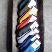 着込むほどではないけれど、朝晩が冷えるというこの時期にちょうどいい、 ソックスとスリッパのいいとこ取りしたみたいな室内用ルームソックスです* 着脱のしやすいショート丈とゆったりとした編み地に仕上げられていて、素足のままの着用はもちろん、ソックスの上からオーバーソックスのように着用しても◎ 靴下のように…