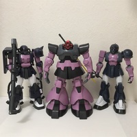 ガンプラはパチ組みで終わらせてる。パチパチと組み立てるだけ。最初それが素組みだと思ってたけど、素組みは墨入れとデカール貼り、トップコートまでを指すらしい。 パチ組みでも楽しいし、成型色でしっかり色分けされてカッコいいのがMGシリーズ。今までにジオン系を中心にいくつか作った。 黒い三連星の高機動型ザクと…
