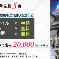 キャンペーン概要 エンジンオイル交換をご利用のオーナー様へ。お得なキャンペーン実施中! エンジンオイル半額 下回り点検 3,000円無料 テスター診断 8,800円無料 《内訳》 エンジンオイル8L+ 工賃 + フィルター交換 + ドレーンワッシャー交換+税 +下回り点検 +テスター診断 これら全て含み、 20,000円〜 ※車種によ…