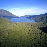 インレット側から見た中禅寺湖。森を抜けて二本の流入河川があるのが分かる。中禅寺湖のトラウトはここを遡上し産卵するため通年、禁漁区となっている。左手は男体山。 天然湖として日本最高所にある元祖レジャーレイク。 その成り立ちや自然、文化、そして現代におけるレジャー性を含め、中禅寺湖は日本の湖沼の歴史的横…