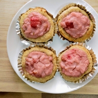 「いちごミルククリームパン」を作りました。 6月は牛乳月間。スキムミルク入りの生地に、材料3つ&レンジで簡単なぷるぷるいちごミルククリームをたっぷり。ふっくら&やさしい甘さです。