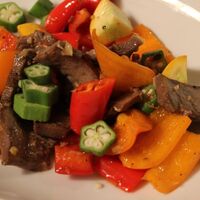 「やわらか〜♡ゆで豚タンのシーズニング炒め」の作り方。スーパーで200円で売っていた豚タンスライス。圧力鍋でゆでて、アジアン調味料でカラフル野菜といためたらクセになる味! 材料: 豚タンスライス、ネギ、しょうが
