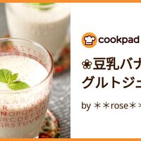 「❀豆乳バナナヨーグルトジュース❀」の作り方。✿100人&クックパッドニュース掲載感謝✿ ヨーグルト入りのバナナジュース♪ 豆乳で作るので栄養満点♡美容と健康に◎ 材料: バナナ、豆乳、プレーンヨーグルト