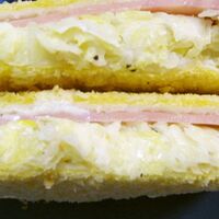 「ノンオイルフライヤーde揚げサンド♪」の作り方。テレビで話題になった佐世保の揚げサンド♪地元で昔から食べなれた揚げサンドをノンフライヤーでヘルシーに甘いマヨがアクセント 材料: サンドイッチ用食パン、チョップドハムスライス、キャベツのコールスロー