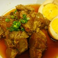「圧力鍋で豚軟骨の煮込み(ソーキ)」の作り方。圧力鍋で作るので、簡単に軟骨までとろっとろになります。でーじまーさん! 煮汁で作るうどんは、あきさみよー!! 材料: 豚軟骨、長ネギの青い部分、生姜スライス