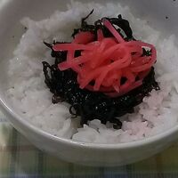 「私が好きな昆布の佃煮と紅生姜のおにぎり」の作り方。紅生姜のアクセントが美味しいですよ♪ 材料: ご飯、昆布の佃煮、紅生姜