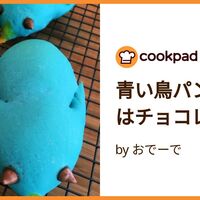 「青い鳥パン・内臓はチョコレート」の作り方。しあわせの青い鳥パン。ふわふわです。 材料: 強力粉、薄力粉、スキムミルク