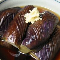 「めんつゆでナスの煮浸し」の作り方。少し甘めのお汁で煮含めたナスは優しい味 夏バテや暑い日には冷やして あと一品や夏野菜大量消費にお勧め レシピ本掲載感謝 材料: ナス、しょうが、めんつゆ