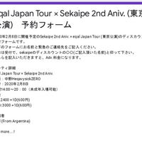 eqal Japan Tour × Sekaipe 2nd Aniv. (東京公演) 予約フォーム