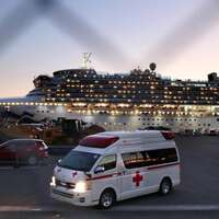 クルーズ船ダイヤモンド・プリンセス号が停泊する横浜港・大黒ふ頭を出る救急車=2020年2月18日(c)朝日新聞社 ダイヤモンド・プリンセス号の悲惨な状況を告発した岩田健太郎医師(YouTubeより)