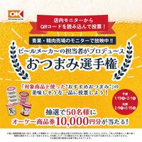 ※キャンペーンの応募は店内に設置されているデリッシュキッチンの店内モニターで流れるキャンペーン応募QRコードよりお申込みいただけます プレゼント内容 オーケー商品券/10,000円相当×50名様 キャンペーン応募条件 オーケーで対象商品をA