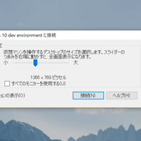 「Hyper-V」では、仮想マシンへの接続に、“仮想マシン接続”と“拡張セッション”の2種類を選択できます。仮想マシンを起動すると標準では“仮想マシン接続”つながりますが、すぐに[xxxxxに接続]というダイアログが表示されます。