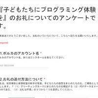 『子どもたちにプログラミング体験を』のお礼についてのアンケートです。