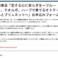 演奏会「恋する心に安らぎを~フルート、テオルボ、ハープで奏でるオトテールとブリュネット~」お申込みフォーム