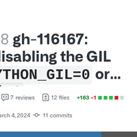 In free-threaded builds, running with PYTHON_GIL=0 or -X gil=0 will now disable the GIL. #116322 and #116329 track follow-up work to re-enable the GIL when loading an incompatible extension, and to...