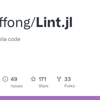 A lint tool for Julia code. Contribute to tonyhffong/Lint.jl development by creating an account on GitHub.