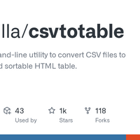 GitHub - vividvilla/csvtotable: Simple command-line utility to convert CSV files to searchable and sortable HTML table.