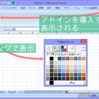アドインを導入するとパレットの項目が右端に追加される クリックすると午後のパレットのアイコンが表示される アイコンをクリックすると午後のパレットが表示される パレットでセルの塗りつぶし パレットの色をクリックすると 選択されたセルがクリックした色で塗りつぶされる セル範囲の塗りつぶし 一個以上のセル範囲も…
