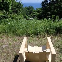 (承前) 冒頭画像は、清水宏晃「雪解け」。 清水さんは木工作家で、要するにこの作品はいすなのですが、設置された場所が、ハルカヤマ藝術要塞の会場で最高の view point だったため、今回の「FINAL CUT」の象徴的な作品として、新聞などでメインビジュアルとして紹介されました。 会場では、じっさいに腰掛けて、はるか石…