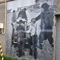 (承前) JR虎杖浜駅を降りて直進すると、太平洋沿いを走る道路に突き当たります。多くの地図に「海産物ロード」と記されており、実際に水産物加工場や、直営の土産物店がぽつぽつと立ち並んでいます。 おもにこの海産物ロードに沿った建物や廃屋の壁などに、モノクロ写真が大きくプリントされており、歩きながら鑑賞してい…