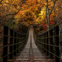 紅葉の吊り橋 花貫渓谷