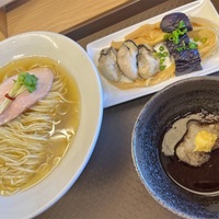 『めん処 きよ洲』㉓「牡蠣と鰹枯節の冷しらぁめん(限定)/サバとオリーブのぶたらぁめん+チーズリゾット」※他に過去の限定メニュー 岩手県盛岡市三本柳